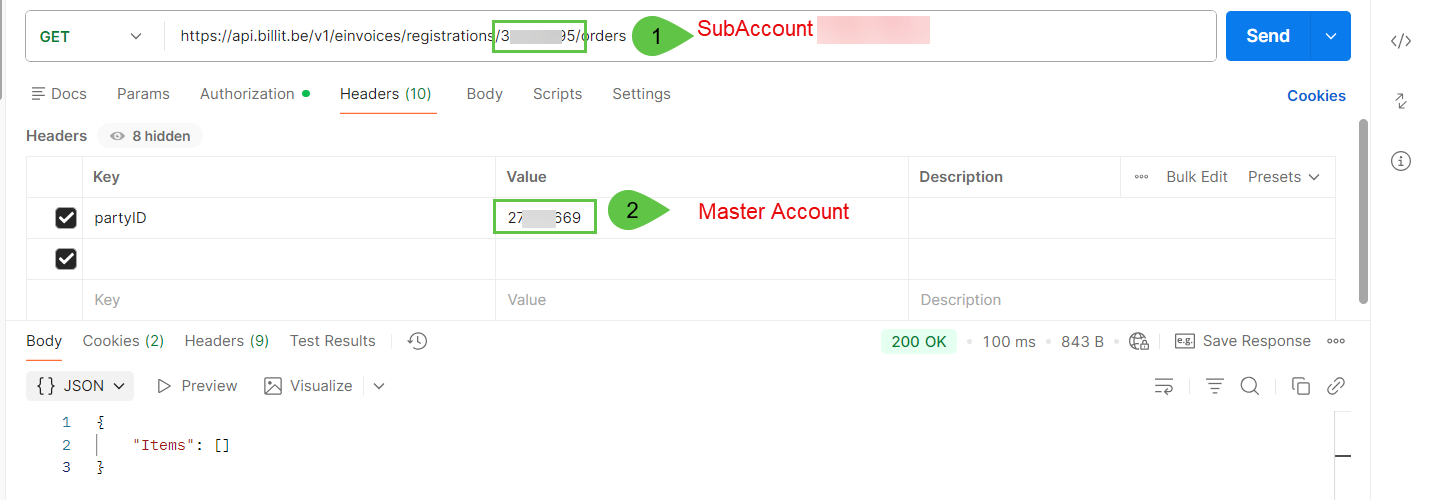 - For accountants managing multiple companies, include both the ContextCompanyID (accountant's ID) and the PartyID (company's ID) in the request headers.